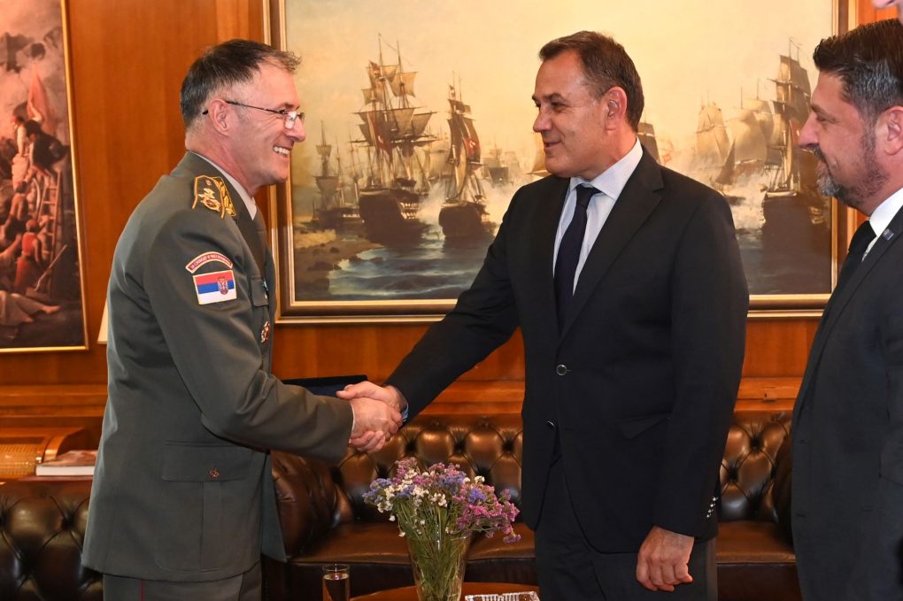 O Υπουργός Εθνικής Αμύνης κ. Νικόλαος Παναγιωτόπουλος είχε σήμερα Τετάρτη 19 Οκτωβρίου 2022, συνάντηση με τον Αρχηγό Γενικού Επιτελείου Ενόπλων Δυνάμεων της Σερβίας, Στρατηγό Μίλαν