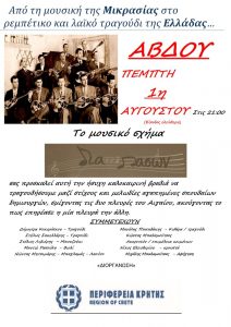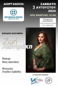 Συναυλία με την Τζωρτζίνα Αλεξάκη από την Αθλητική Ένωση Μοιρών. Με την υποστήριξη της Περιφέρειας Κρήτης