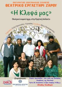 Παραστάσεις από το θεατρικό Εργαστήρι Ζαρού με την στήριξη της Περιφέρειας Κρήτης και ελεύθερη είσοδο