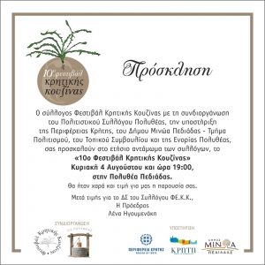 10ο Φεστιβάλ Κρητικής Κουζίνας με την στήριξη της Περιφέρειας Κρήτης