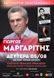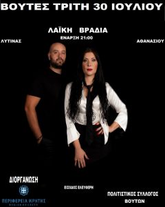 Συναυλίες λαϊκής μουσικής με τον Βαγ. Λύτινα-Με την στήριξη της Περιφέρειας Κρήτης με ελεύθερη είσοδο