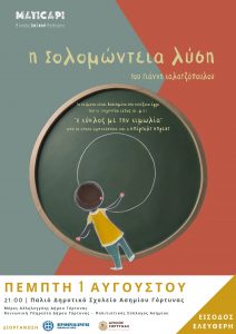 ΘΕΑΤΡΟ ΓΙΑ ΠΑΙΔΙΑ |«Η Σολομώντεια Λύση» του Γιάννη Καλατζόπουλου | Παλιό Δημοτικό Σχολείο Ασημίου Γόρτυνας |