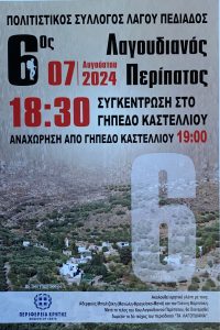 6ος Λαγουδιανός περίπατος και εκδηλώσεις στο Λαγού Πεδιάδος με τη στήριξη της Περιφέρειας Κρήτης