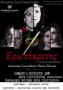 Ερωτόκριτος από τη θεατρική σκηνή Ηρακλείου με τη στήριξη της Περιφέρειας Κρήτης