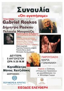 Συναυλία «Ότι αγαπήσαμε» στο «Μ. Χατζιδάκις» με την στήριξη της Περιφέρειας Κρήτης