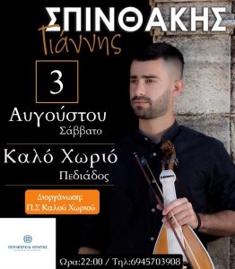Κρητική βραδιά στη Κάτω Βιάννο με το συγκρότημα του Γ. Γλυκοκόκαλου-Με την στήριξη της Περιφέρειας Κρήτης