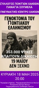 Π.Ε. Χανίων: ΕΚΔΗΛΩΣΗ ΜΝΗΜΗΣ 106 ΧΡΟΝΙΑ από τη ΓΕΝΟΚΤΟΝΙΑ ΤΩΝ ΕΛΛΗΝΩΝ ΤΟΥ ΠΟΝΤΟΥ