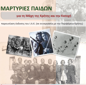 84η Επέτειο της Μάχης της Κρήτης, παρουσίαση του βιβλίου με τίτλο «Μαρτυρίες Παιδιών για τη Μάχη