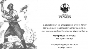 Πρόσκληση του Δήμου Σφακίων στην κεντρική εκδήλωσή του για τον εορτασμό της 84ης Επετείου της Μάχης