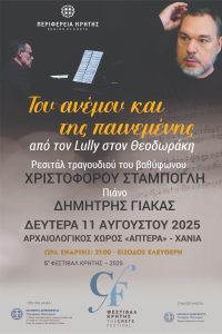 Π.Ε. Χανίων: «Του ανέμου και της παινεμένης – από τον Lully στον Θεοδωράκη» Ρεσιτάλ με τον