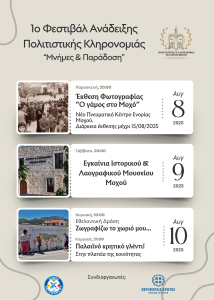 1ο Φεστιβάλ Ανάδειξης Πολιτιστικής Κληρονομιάς “Μνήμες και Παράδοση” 8, 9, 10 Αυγούστου 2025 με την στήριξη
