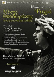 Μουσική εκδήλωση «Η Κρήτη του Μίκη», στο πλαίσιο του 5ου Φεστιβάλ της Περιφέρειας Κρήτης