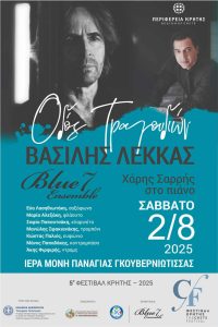 «Οδός τραγουδιών», συναυλία με το Βασίλη Λέκκα, το Blue7Ensemble και τον Χάρη Σαρρή στο πιάνο στην
