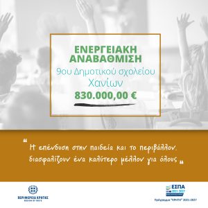 Ενεργειακή αναβάθμιση του 9ου Δημοτικού Σχολείου Χανίων από την Περιφέρεια Κρήτης
