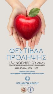 2ο Φεστιβάλ Πρόληψης της Περιφέρειας Κρήτης 6 και 7 Νοεμβρίου στο Πολιτιστικό και Συνεδριακό Κέντρο