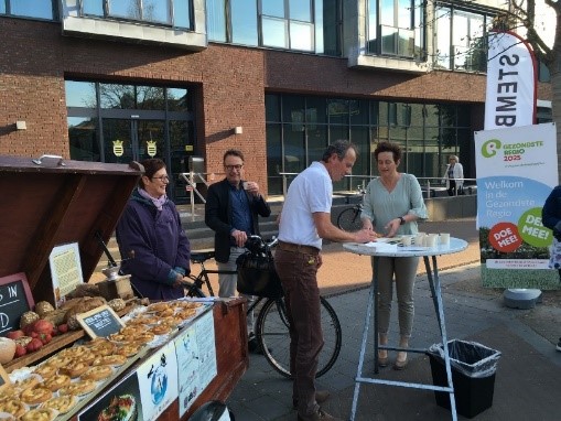 In the lead up to the “Bike to work day” and on the day itself, the city promoted the bicycle as a healthy and sustainable option for commuting to work. Citizens were encouraged to leave their cars at home and use their bikes, even for just for one day. People who took up the challenge and cycled to work were rewarded with a healthy drink and sandwich to kick-start their day.